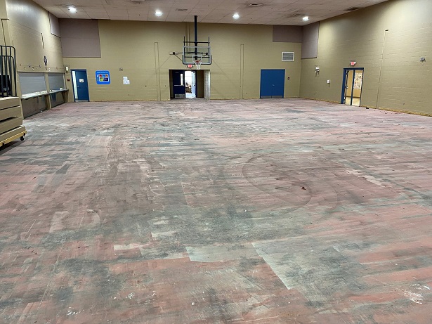 Construction work continues at Lincoln Elementary. The gym floor has been removed, the playground site work is beginning and crews will pour the concrete slab for the new cafeteria addition on Tuesday morning. The bathrooms are also ready for new flooring after wall tile is installed.
