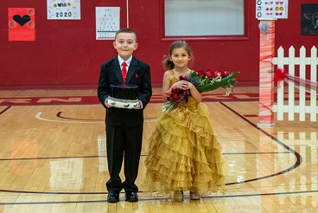 Photo Caption: Tonkawa’s Isaac Harmon (left) and Rylan Paul were the crown bearer and flower girl at NOC Homecoming last Thursday night. (photo by John Pickard/Northern Oklahoma College)