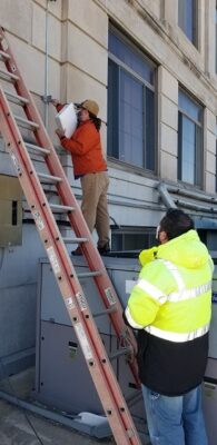 Photo Caption: OneNet Technicians install Wireless Access Point at the Kay County Courthouse in Newkirk, OK.