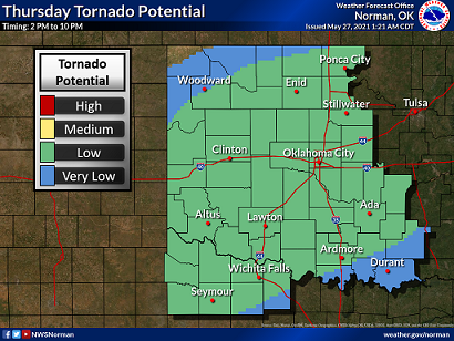 The National Weather Service in Norman has placed Kay County and much of Oklahoma under an enhanced risk for severe weather for Thursday.