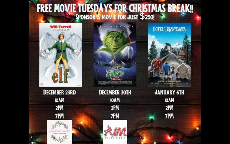 FREE MOVIE TUESDAY starts next week with Elf on December 23rd. All of our Winter Free Movies will be over Christmas Break!