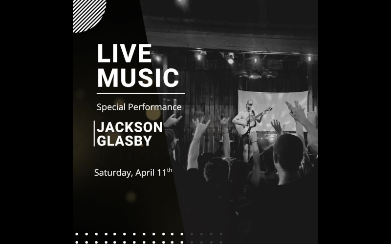 Jackson Glasby Music is playing from 8PM to 11PM!