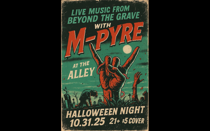 Join us for a Halloween bash you won’t forget. With guests M-Pyre to light the stage on fire. This band is made for a killer Halloween party!