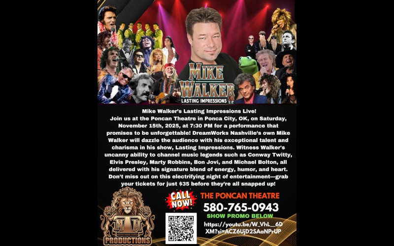 Get ready for an unforgettable night of music, laughter, and nostalgia as award-winning entertainer Mike Walker brings his celebrated show Lasting Impressions to the historic Poncan Theatre!