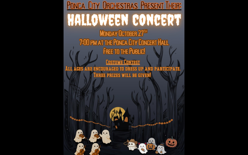 The Po-Hi Symphony and Philharmonic Orchestras are set to perform their Fall/Halloween Concert on Monday, October 27, in the Ponca City Schools Concert Hall! Students and directors will perform in costume, and the evening will feature fun music like Ghostbusters, Avengers, and Thriller — plus a costume contest for audience members with prizes for the best looks of the night!