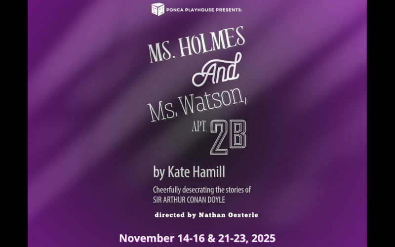 Join us at the Ponca Playhouse for the second production of our 67th Season: MS. HOLMES & MS. WATSON – APT. 2B. This modern comedy by Kate Hamill is a delightful gender flipped send-up of the tales of Sir Arthur Conan Doyle. The show runs November 14-16 & 21-23, 2025. Tickets on sale soon!