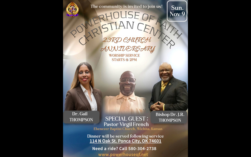 The community is invited to join Powerhouse of Faith Christian Center as they celebrate their 23rd Church Anniversary on Sunday, November 9, beginning with a Worship Service at 2:00 PM.