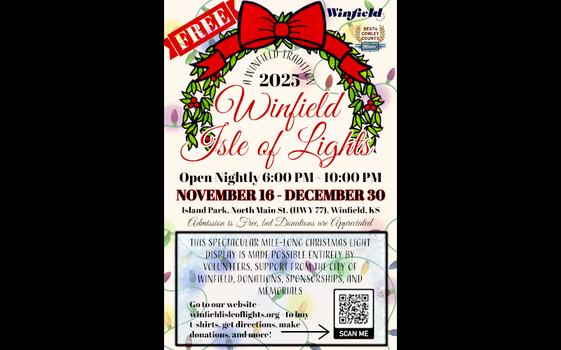 This spectacular mile-long Christmas light display is made possible entirely by volunteers, support from the city of Winfield, donations, sponsorships, and memorials.