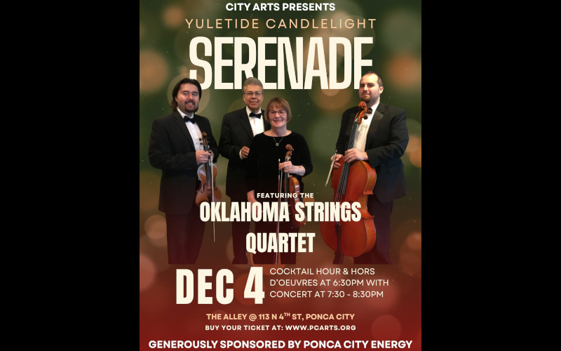 Join City Arts on December 4th for an enchanting Yuletide Candlelight Serenade – featuring cocktails, hors d’oeuvres, and a candle-lit performance by the Oklahoma Strings quartet at The Alley. This sophisticated event is ideal for a romantic evening or a refined holiday celebration. Secure your tickets now by clicking the link below: