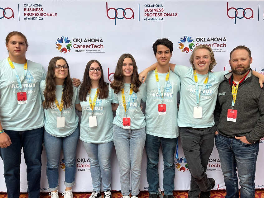 Ponca City High School DECA and BPA chapters recently attended the Oklahoma Fall Leadership Conference in Norman. Students had the opportunity to enhance learning skills through networking, workshops and community service. Leadership is something students build over time and these high school leaders learned more about how to assemble the tools they need to grow and achieve their goals. DECA students included Tynli Nickell, Amaela Sunderland, Lanie Hendricks, Ryleigh Rowe, Laney Reynolds, Emma Bickford and advisor Heather Monks. BPA students attending were Dylan Nance, Amanie Owdetallah, Madison Thibodeaux, Andi Massey, Ethan Meyer, Toby McDaniel and advisor Jerad Warlick.