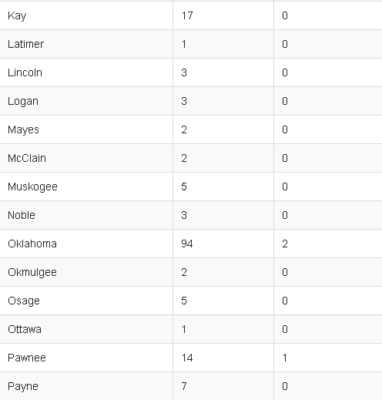Kay county made the jump from 11 on Thursday to 17 COVID-19 cases. For area counties in northern Oklahoma, Osage County has 2 new cases and now sits at 5 overall COIVID-19 reports, Payne has 7 cases, 14 in Pawnee County, 3 in Logan and one new cases for Noble County that now has 3 COVID-19 cases.