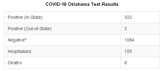 There have been 8 deaths in Oklahoma due to COVID-19. Reports show 105 Oklahomans have been hospitalized from the virus.