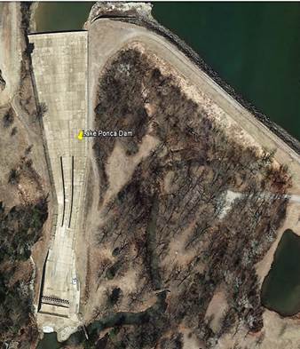 Photo caption 1: Aerial view of the Lake Ponca Dam Spillway.
