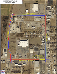 Phase One of the project is scheduled to begin on Monday, April 5, 2021. During Phase One, the westbound lanes of Prospect Avenue from 14th Street to 350 feet west will be closed. Traffic will be detoured north on 14th Street to Knight Avenue, then west on Knight Avenue to Fifth Street, then south on 5th Street back to Prospect Avenue. The eastbound lanes of Prospect will remain open during the Phase One portion of the project. The total contract time for the Phase One work is 20 calendar days.
