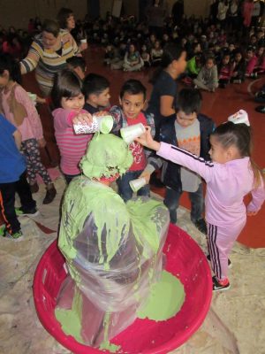 If you ever watched much Nickelodeon growing up, you might be familiar with “slime” being poured on people. Students at Lincoln Elementary School had a great time getting to “slime” their Assistant Principal Dawn Mills. All students who successfully completed their reading challenge for the third nine weeks got to participate in the fun and yucky event. Posted below are photos taken.