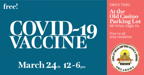 The White Eagle Health Center announced that there will be a free mass vaccination event on Wednesday, March 24, from 12 p.m.-6 p.m. at 101 White Eagle Drive.