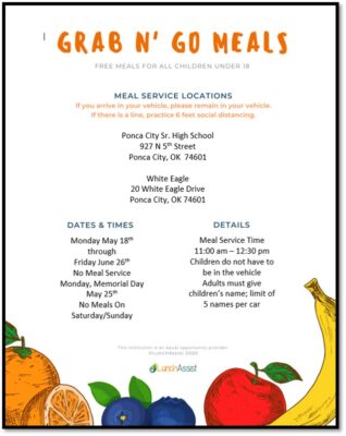 HomeLocalPonca PostNew schedule for the PCPS Grab-N-Go Meals starting Monday, May 18New schedule for the PCPS Grab-N-Go Meals starting Monday, May 18Fri, May 15, 2020 by Lyman JamesSHARE NOW