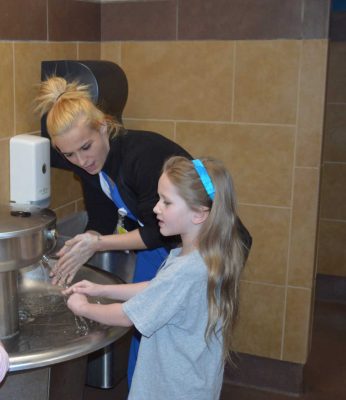 Nursing students from Pioneer Technology visited Woodlands Elementary to lead hand-washing clinics in all classes. Students were taught best hand-washing techniques to prevent the spread of germs and disease. Students took turns practicing as the nurses coached them through the process. They even learned a catchy hand-washing song.