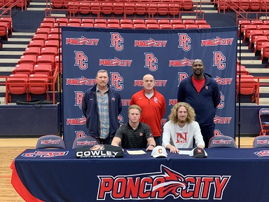 Ponca City Senior High School athletes Eli Wohl, son of Rod and Samantha Wohl, signed today with Cowley College in Arkansas City to play baseball. Po-Hi Senior Luke Seals, son of Blake and Debbie Seals, signed with Newberry College in Newberry, South Carolina to play basketball. Both boys have been active in Po-Hi Athletics throughout their high school careers, with Eli playing football and baseball and Luke playing basketball and baseball.