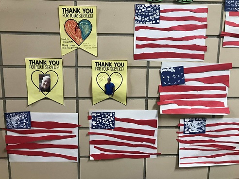 Classrooms at Washington PreK Center honored our Veterans by making crafts to display in the school. Families were also encouraged to participate by sending in pictures of Veterans in their family. Students pictures are Antoine DeLodge and Ahilyn Navarro. Washington Pre-K center loves our Veterans and we thank them for their service. (2 pictures)