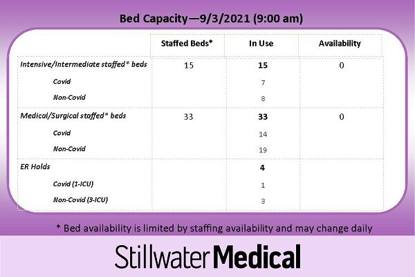 SMC is having the medical shelters on site due to the possibility of the ER becoming overloaded. SMC’s hope is that hope is that no patients will need to receive care in the outdoor tents. As of Friday, September 3, all staffed beds were in use.