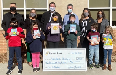 The Woodlands Book Fair is happening through March 5, 2021. Woodlands’ P.I.E. Partner Equity Bank presented the school a check for $250 to help provide books for classroom libraries and assistance for student purchases at the Book Fair. Woodlands Principal Tim Williams said, “We appreciate Equity Bank’s support of public education and of Woodlands Elementary School!”